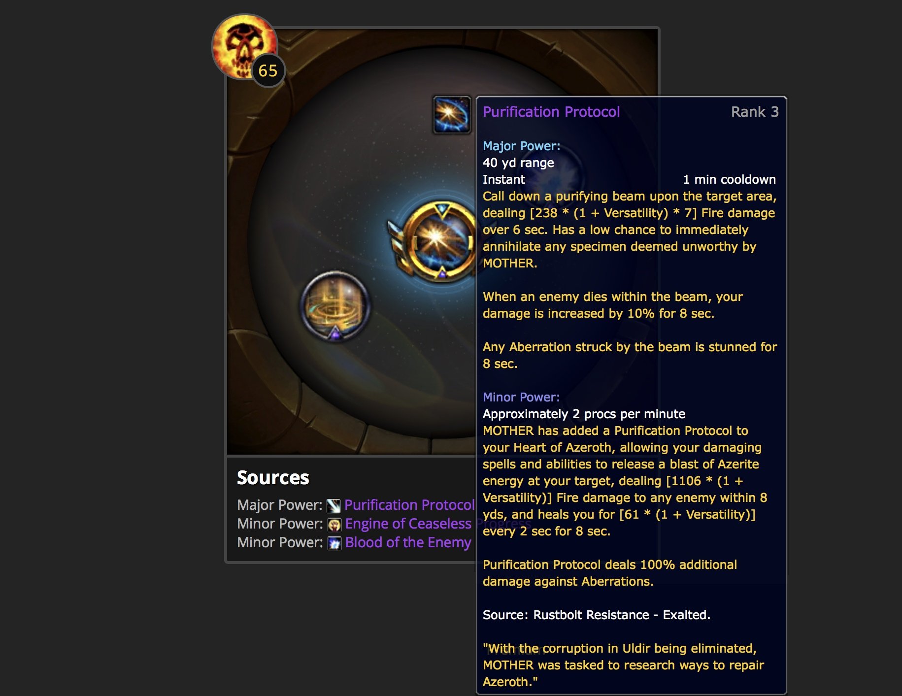Mar 18, 2020 · an essence is a new type of item in patch 8.2. Placing an essence in the minor slot grants you only the minor (passive) power of that essence.; Battle for azeroth, how to unlock them and increase their rank, as well as how well they compare with one another and which major and minor … You can customise your heart of azeroth to … Jun 29, 2020 · heart of azeroth in patch 8.3 in patch 8.3, a new minor trait will be unlocked at level 75 and new stamina nodes at level 71 and 80. Jul 08, 2019 · world of warcraft's 8.2 update, rise of azshara has brought about many changes to battle for azeroth,. Each essence has four ranks, ranging from rank 1 (uncommon) to rank 4 … Mar 16, 2020 · update march 17 to enable your characters to receive echoes of ny'alotha, you must first log into your other characters who have rank 3 essences. Placing an essence in the major slot of your heart of azeroth grants you both powers of that essence.; Here is an overview of what you will need to complete to access … Essences will be placed directly into your heart of azeroth, but players will have to unlock multiple slots, in which to place the essences, by leveling up the neck further using artifact power. This will also unlock your rank 3 essences for purchase from mother on eligible alts. Jun 18, 2019 · as players progress through the nazjatar questline in rise of azshara, they can unlock more content such as the heart of azeroth essence system, war campaign, and mechagon zone.